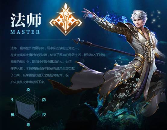 法师可以说是游戏中群攻能力最强的职业,法师的能力分布最为平均。他在生命值、机动性、伤害或防御上都可圈可点。法师可谓自然的恩赐,掌握力量与魔法,游走在天地万物之间,感悟大自然道义,造出了诸多强大伤害的技能,擅长群体战斗,能产生令敌人丧胆的大量高伤害群体攻击。在远攻方面,也是数一数二的佼佼者,杀人于千里之外,来无影去无踪。在PVE副本中,法师擅长的AOE,给群怪造成成吨伤害,是团队中主要输出所在。在PVP中,法师是全队列最后的成员,擅长的远攻和AOE让对方肉盾无力招架,是撕破对手第一防线的功劳者。